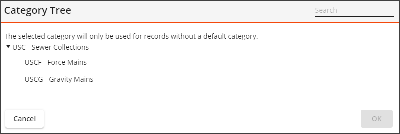 . If any of the selected records do not have a Default Work Category, the following pop-up appears: