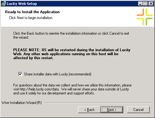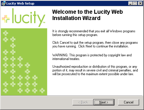 The Web Installation must be performed at the server where the application will reside. Installation instructions may vary slightly depending on which database you are using (Oracle or SQL Server). We recommend that you close all Windows applications before running the Lucity software setup.