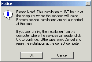 The Services install/upgrade should be performed only once at the server where services will reside. Do not install this program on more than one server. We recommend that you close all Windows applications before installing the Services.