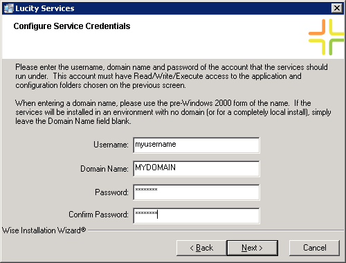 Note: If your server is not running in a domain environment, simply leave the Domain Name field blank.