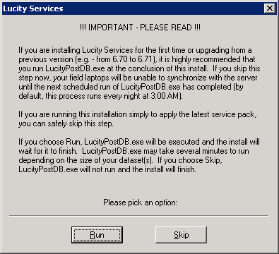 to complete this process. Note: This is the final step in the Services install/upgrade.