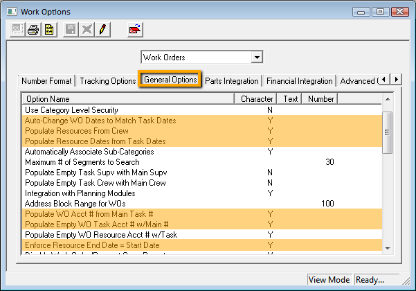 Turn on the following options (in orange above). (Enter Edit mode . Then, right-click on the option and select Edit. Enter "Y" in the field provided and click OK.)
