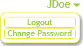 The user controls are found in the top right corner of the screen and appear as the user Login ID. When the ID is click users are given the option to Logout or Change Password.